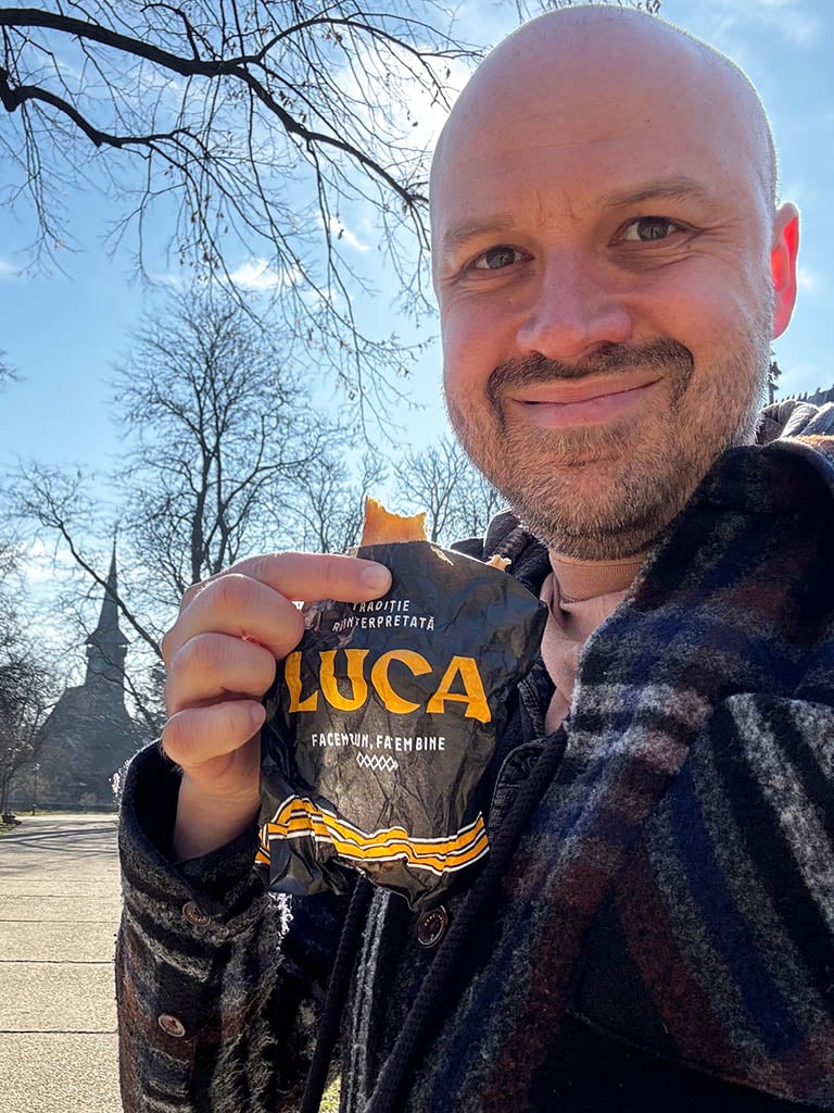 Try some of the covrigi from Luca. These are like giant pretzels that come with various fillings, sweet or savoury. And they’re great!